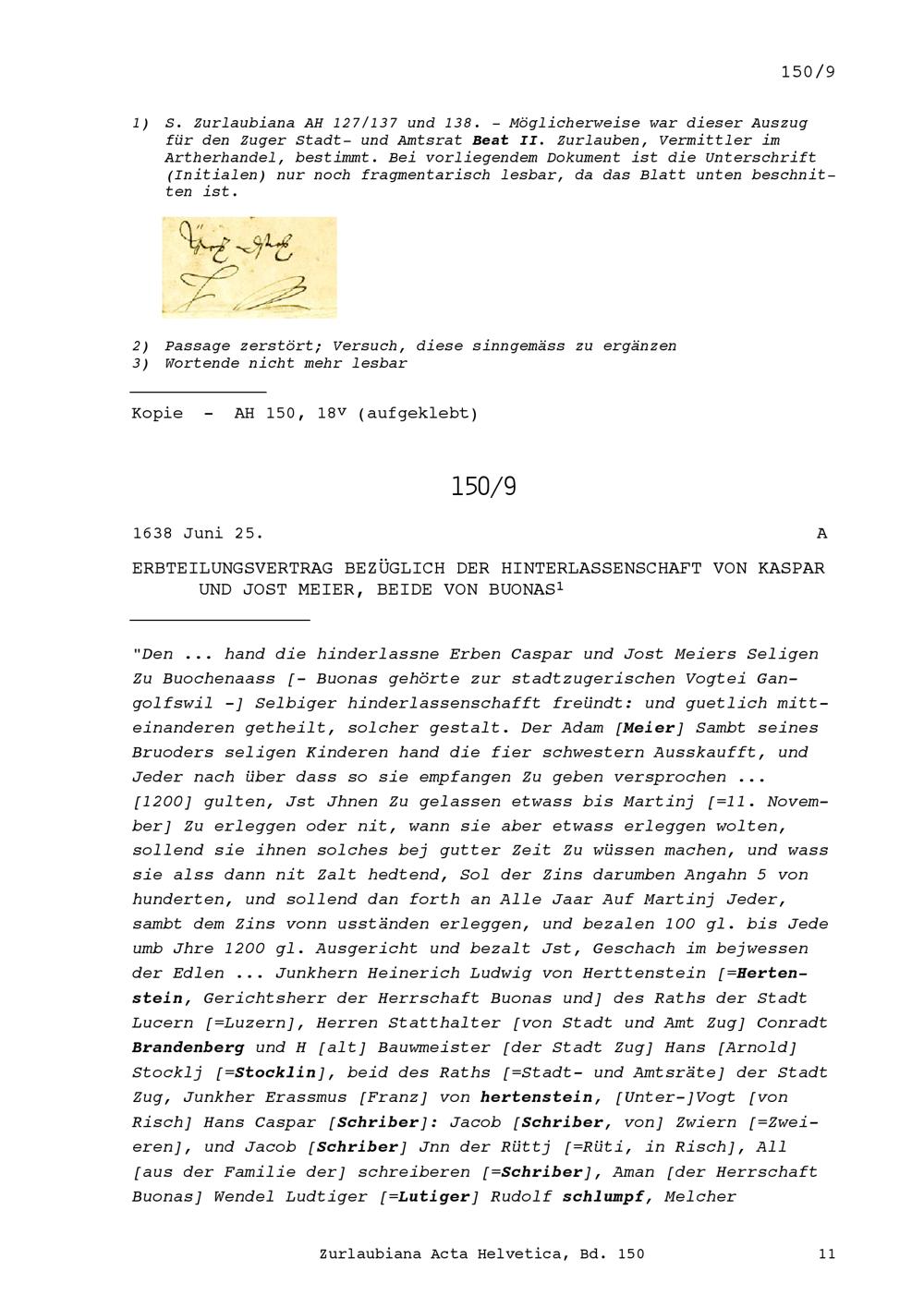 Erbteilungsvertrag bezüglich der Hinterlassenschaft von Kaspar Meier und von Jost Meier, beide von Buonas