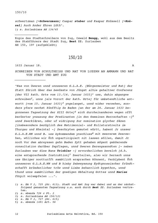 Schreiben des Schultheiss und Rats Luzern an Ammann und Rat von Stadt und Amt Zug