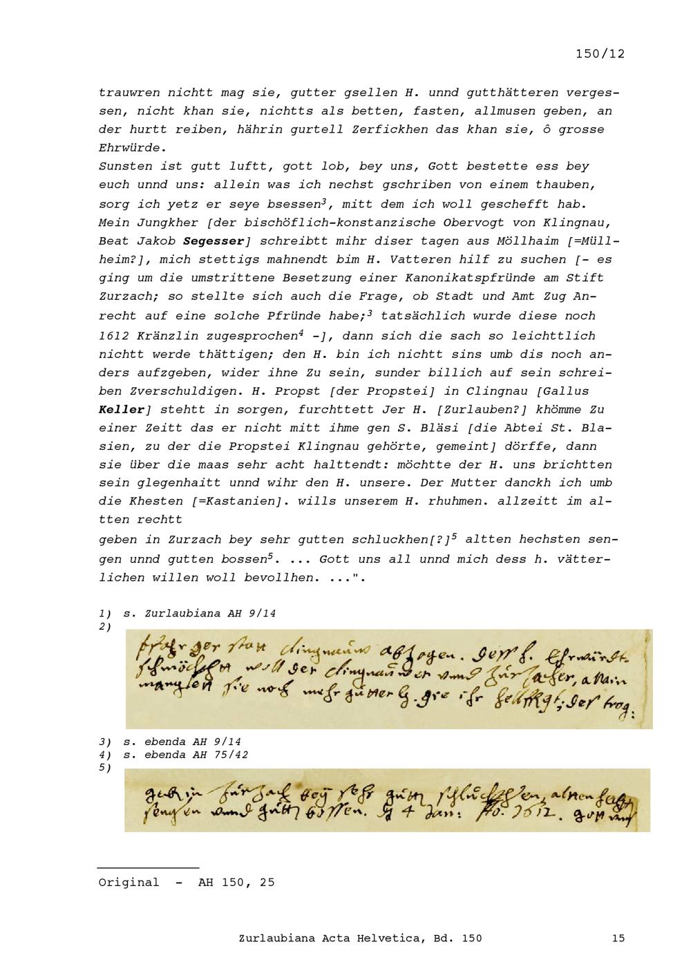 Schreiben von Pfarrer von Klingnau, Michael Johann Kränzlin, an Stadtschreiber und Stadt- und Amtrat Konrad III. Zurlauben, Zug