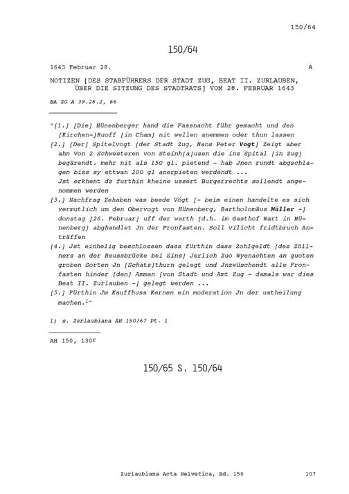Acta Helvetica, Band 150