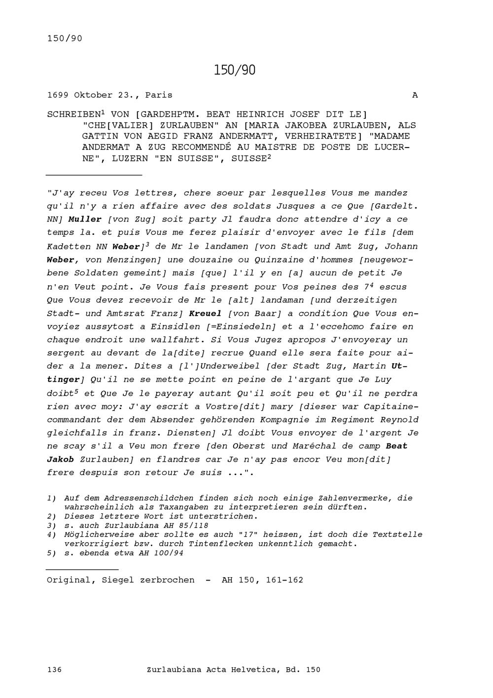 Acta Helvetica, Band 150
