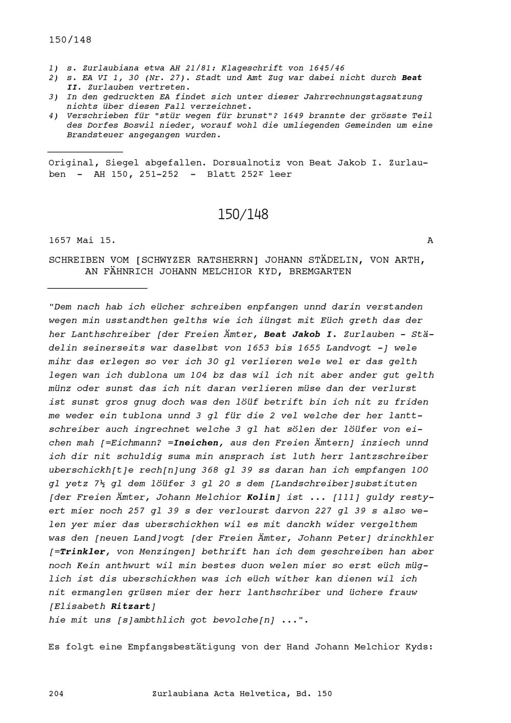 Acta Helvetica, Band 150
