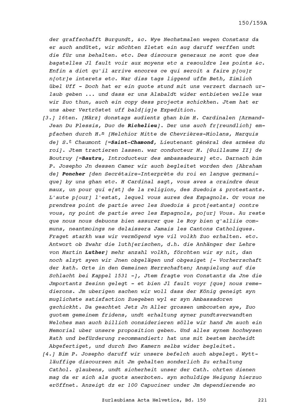 Bericht über die Gesandtschaft der Fünf Katholischen Orte nach Frankreich, aufgezeichnet von Beat II. Zurlauben, Gesandter
