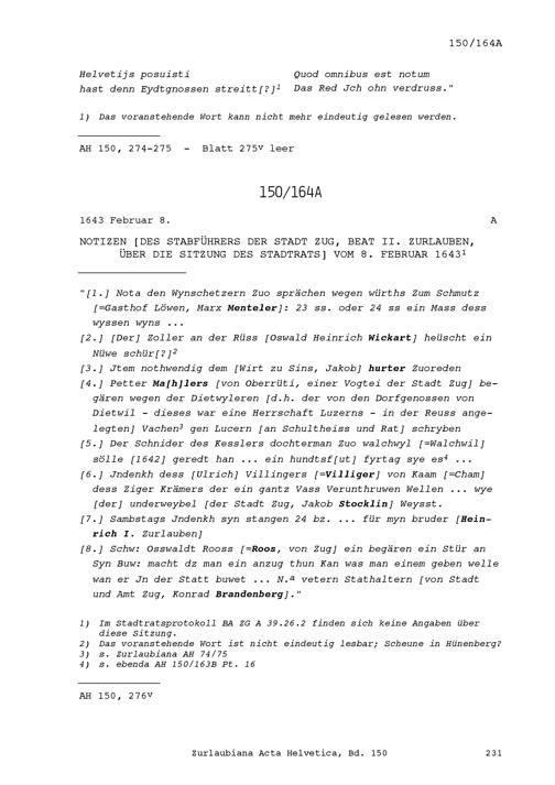 Acta Helvetica, Band 150