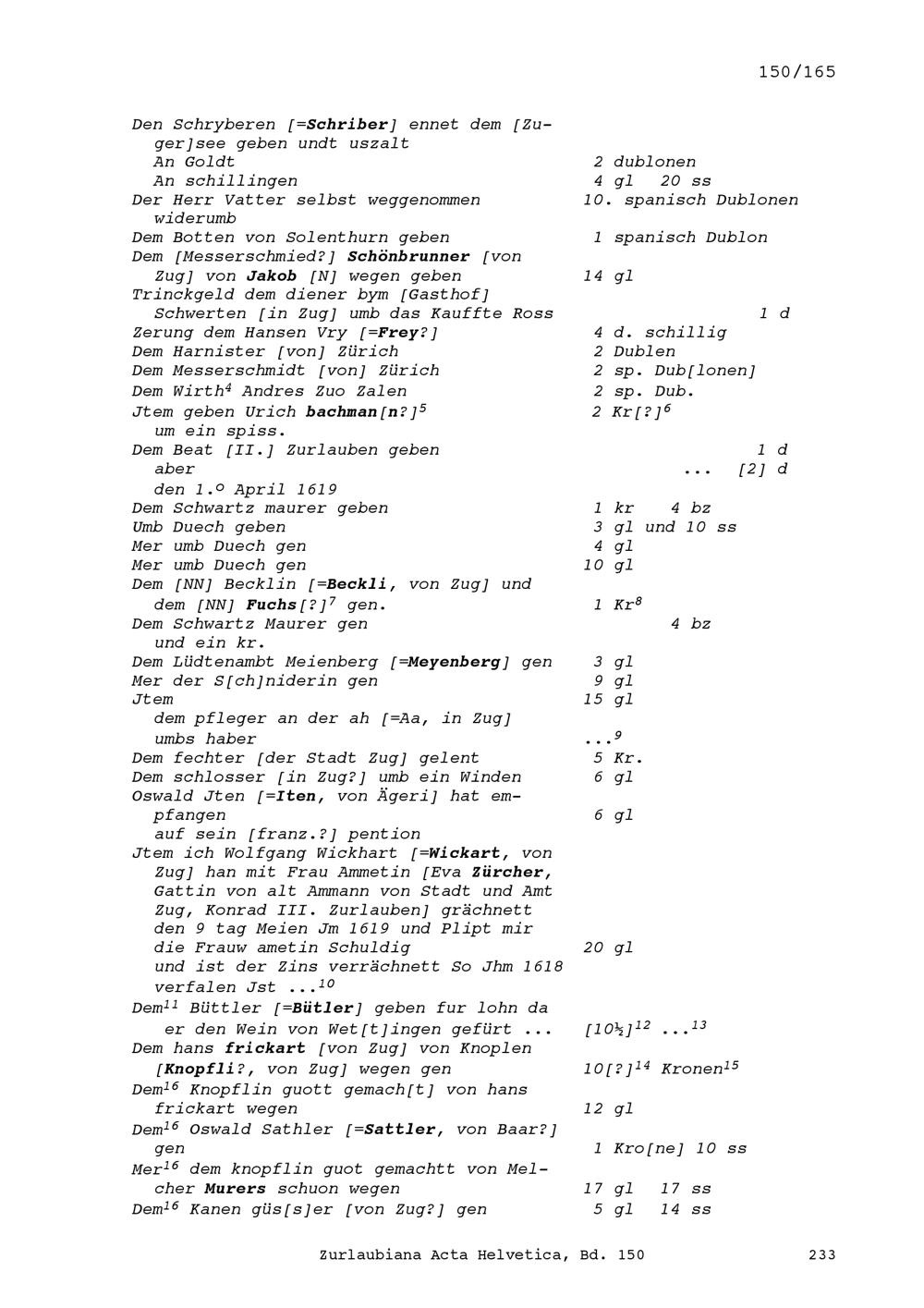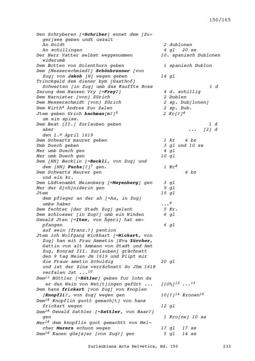 Abrechnung von Konrad III. Zurlauben, Stadt- und Amtrat Zug