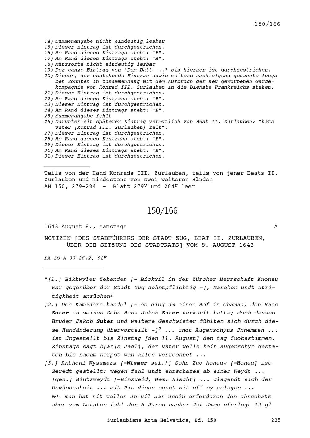 Acta Helvetica, Band 150