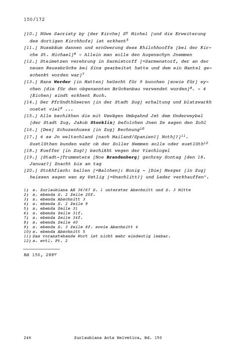 Notiz von Beat II. Zurlauben, Stabführer der Stadt Zug, über die Sitzung des Stadtrats...
