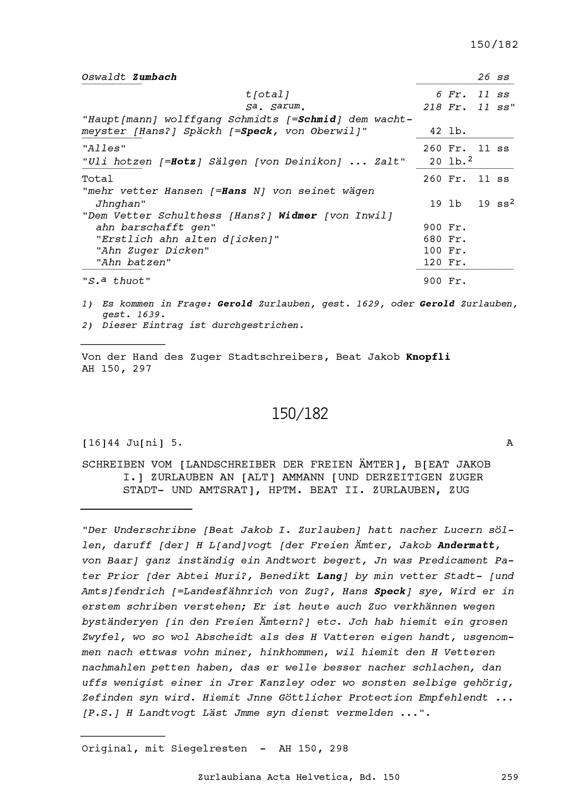 Acta Helvetica, Band 150