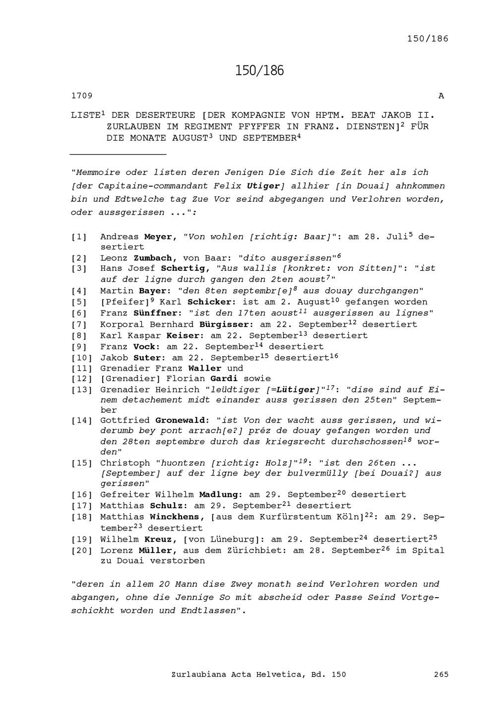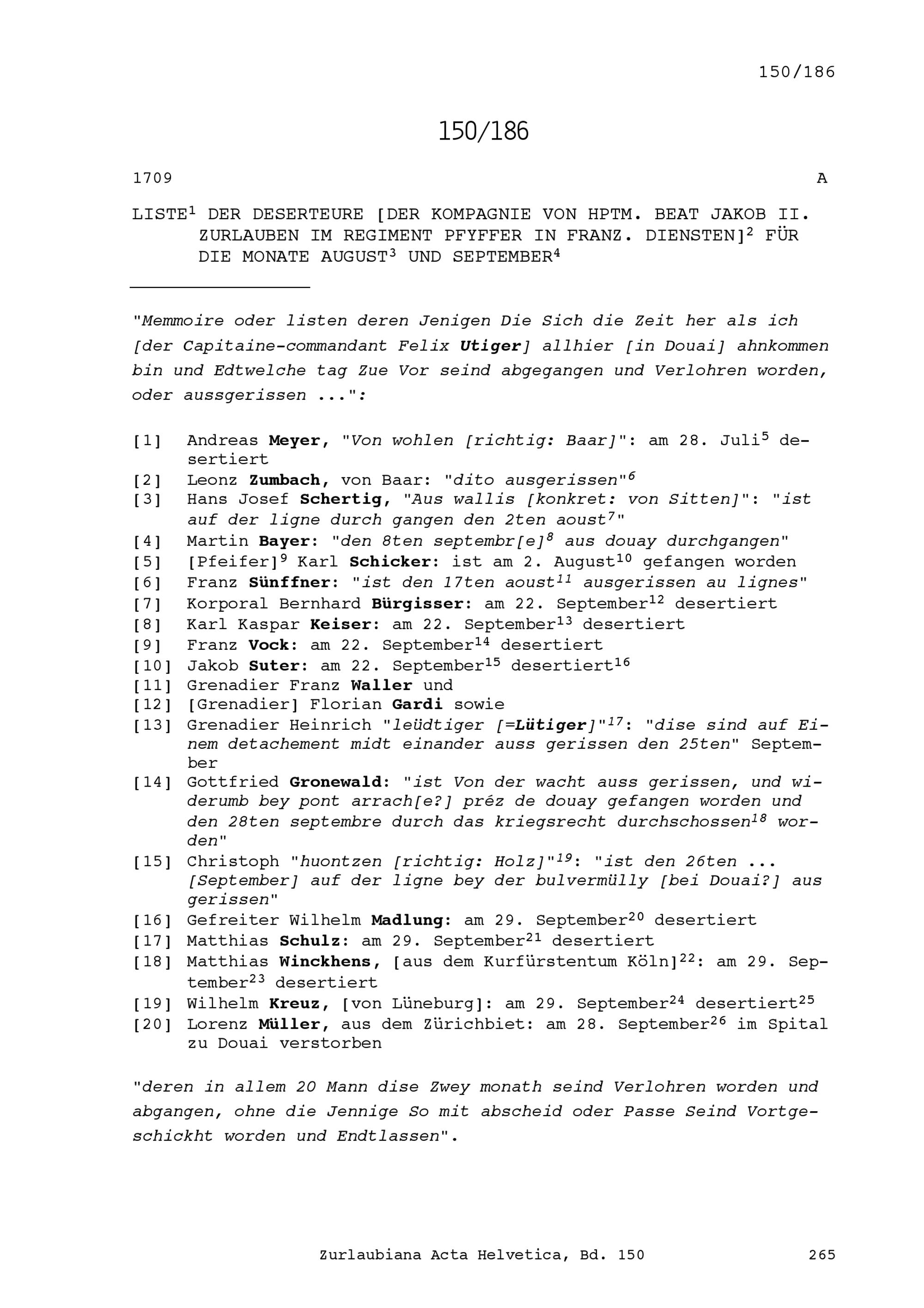 Deserteure der Kompanie von Beat Jakob II. Zurlauben, Hauptmann im Regiment Pfyffer...