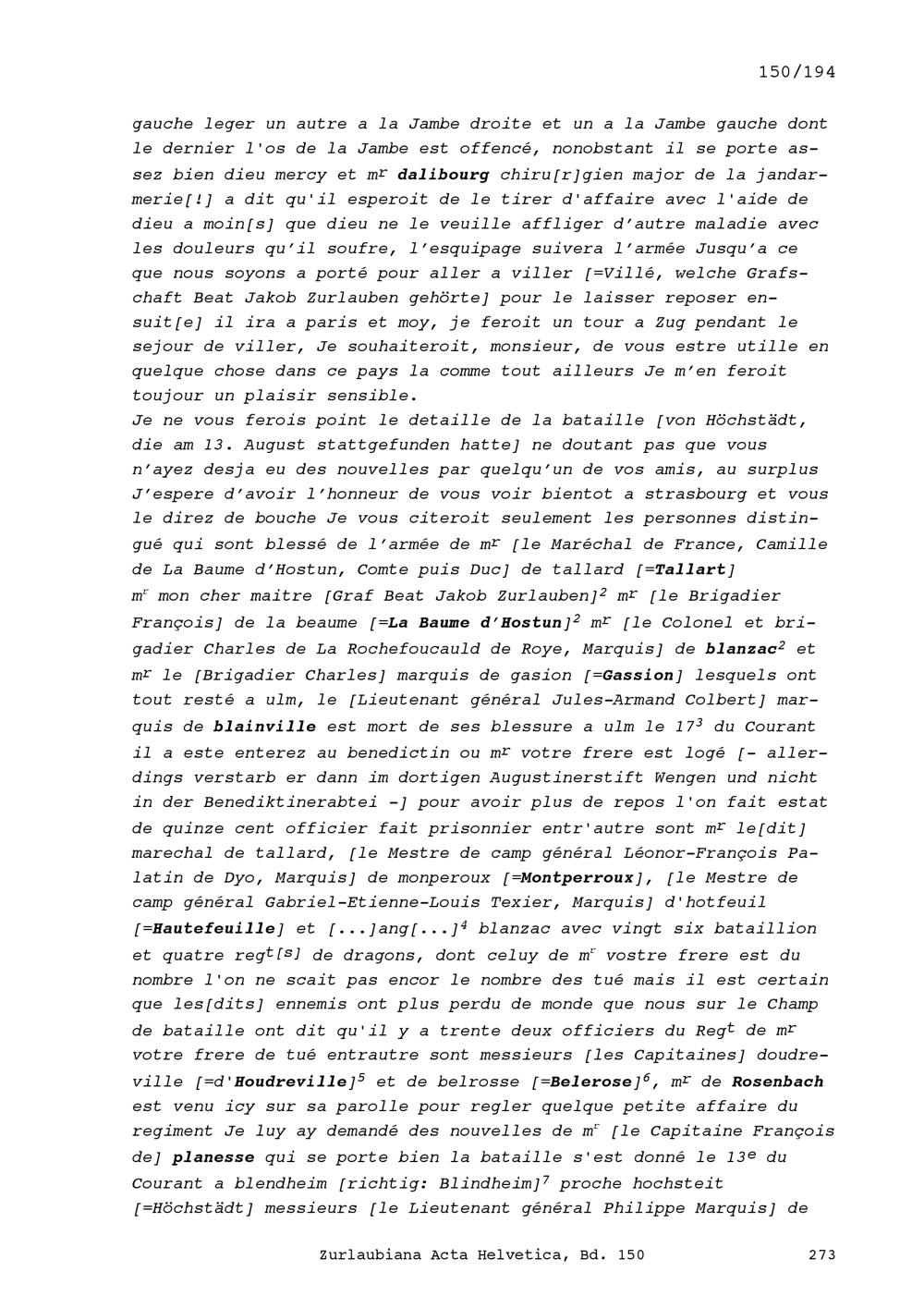 Schreiben von Unbekannt an Beat Heinrich Josef Zurlauben, Gardehauptmann und Brigadier