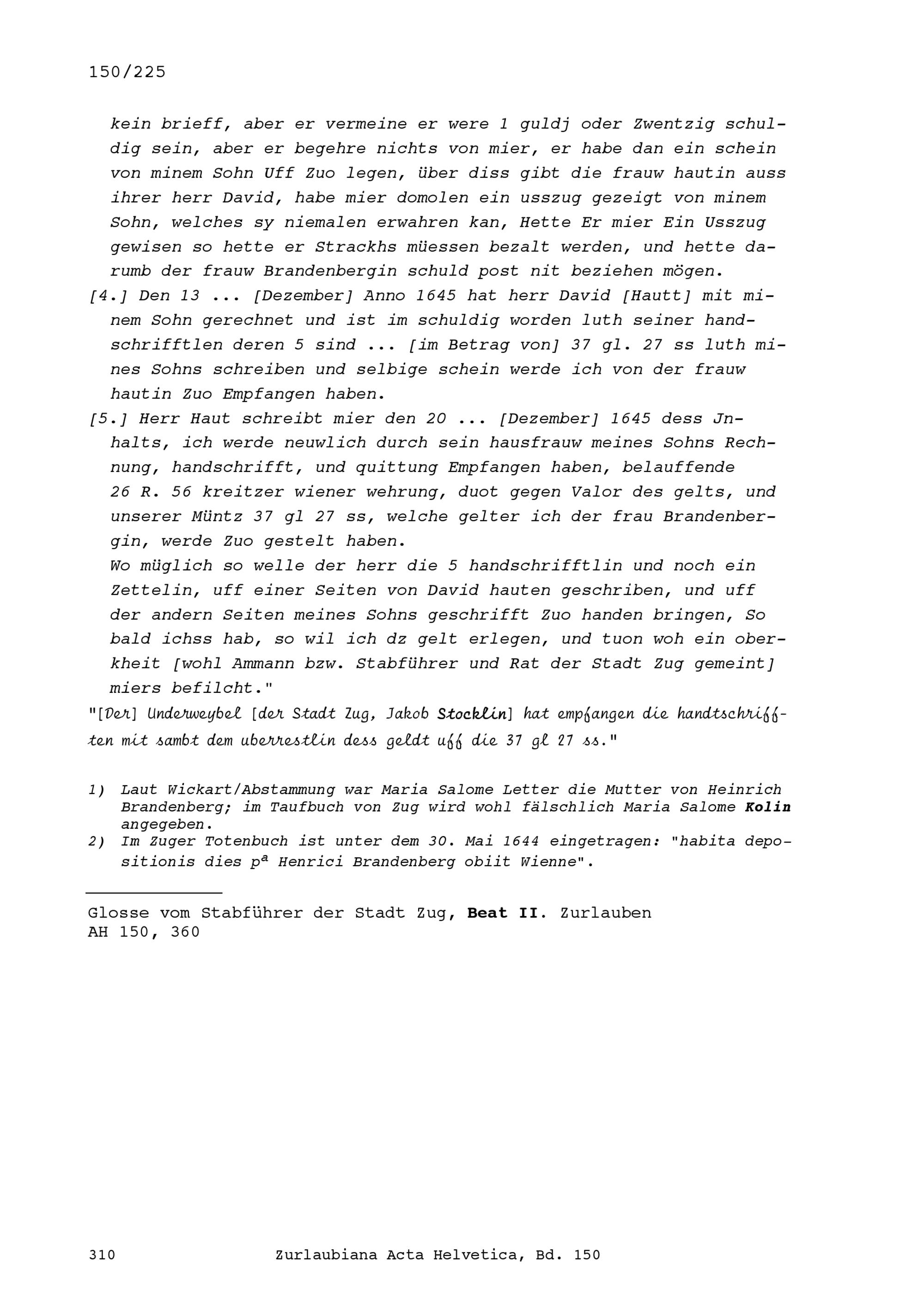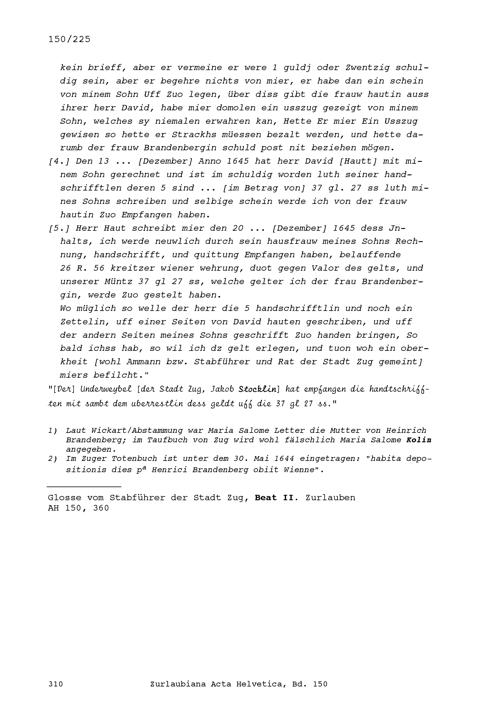 Aufzeichnungen unter anderem über allfällige Schulden von Heinrich Brandenberg, selig, von Zug
