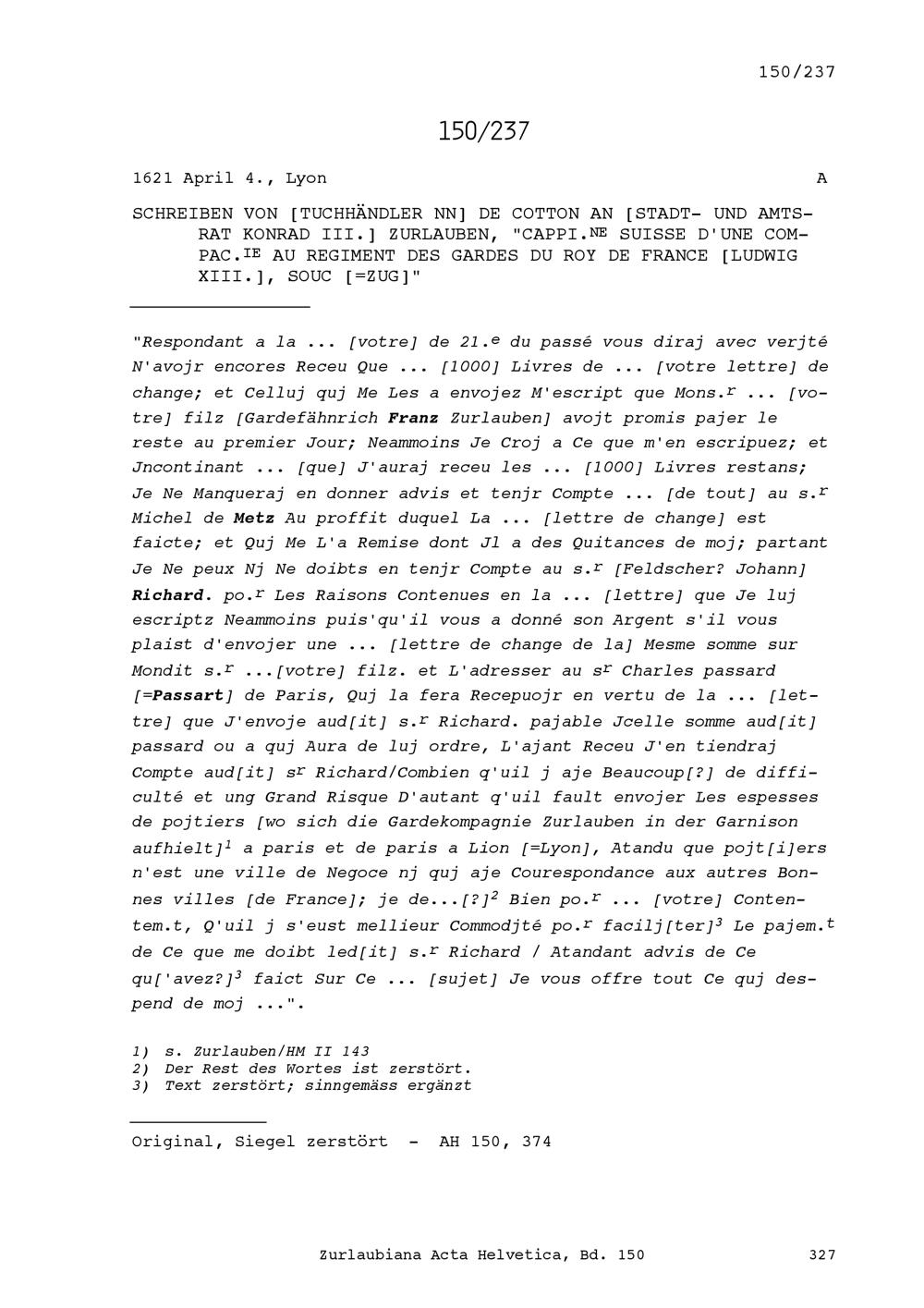 Acta Helvetica, Band 150