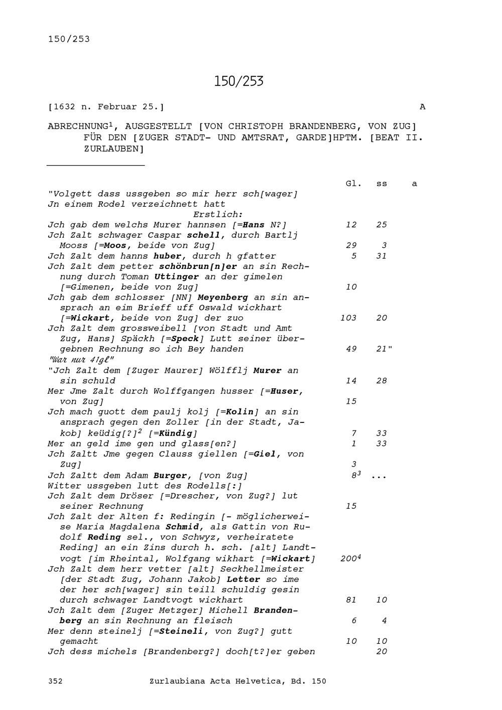 Abrechnung für Beat II. Zurlauben, Stadt- und Amtrat Zug, Gardehauptmann, ausgestellt von Christoph Brandenberg, von Zug