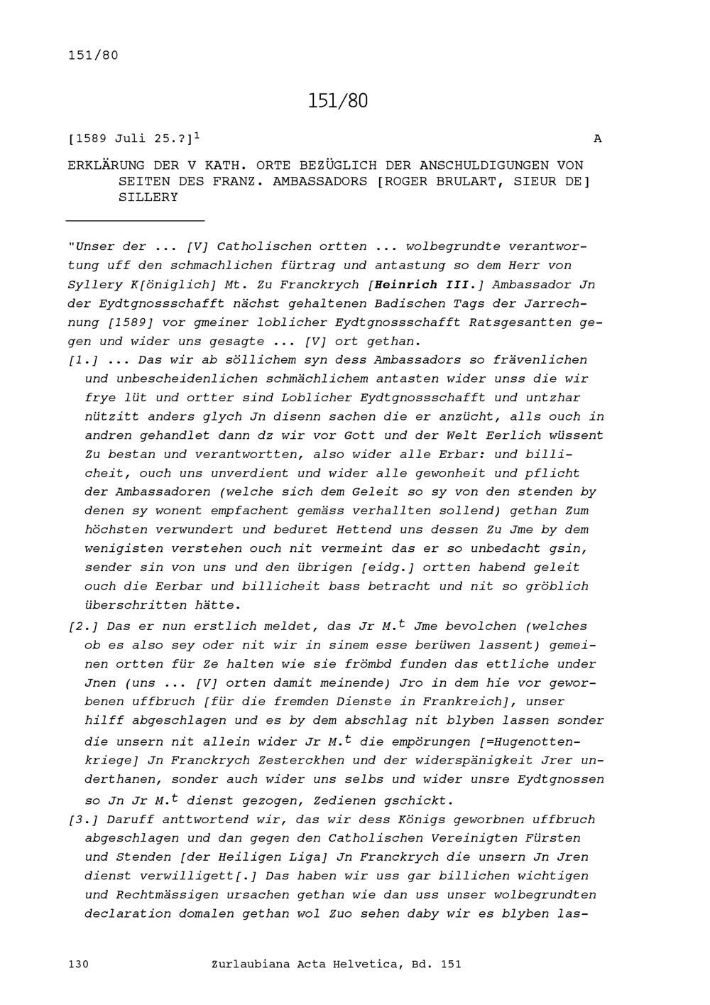 Erklärung der Fünf Katholischen Orte bezüglich der Anschuldigungen von Roger Brûlart de Sillery, Ambassador von Frankreich