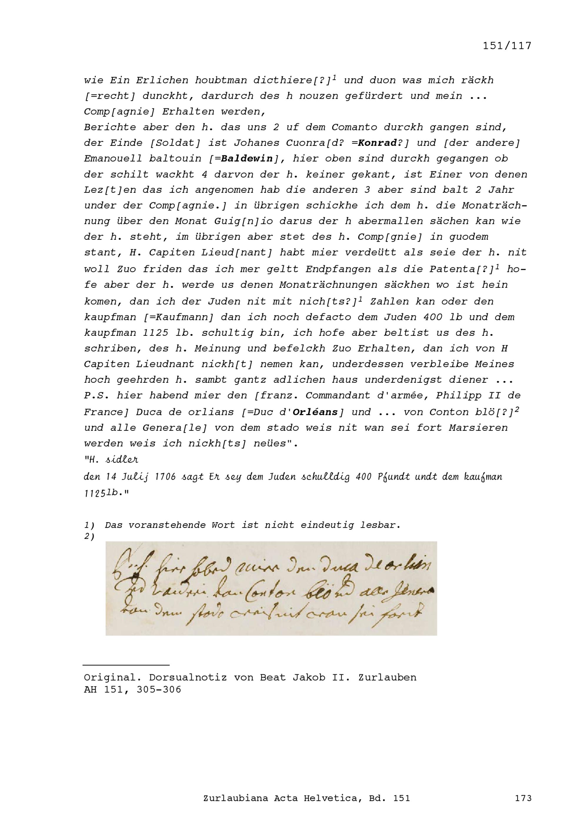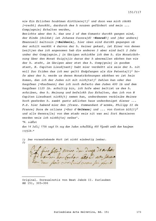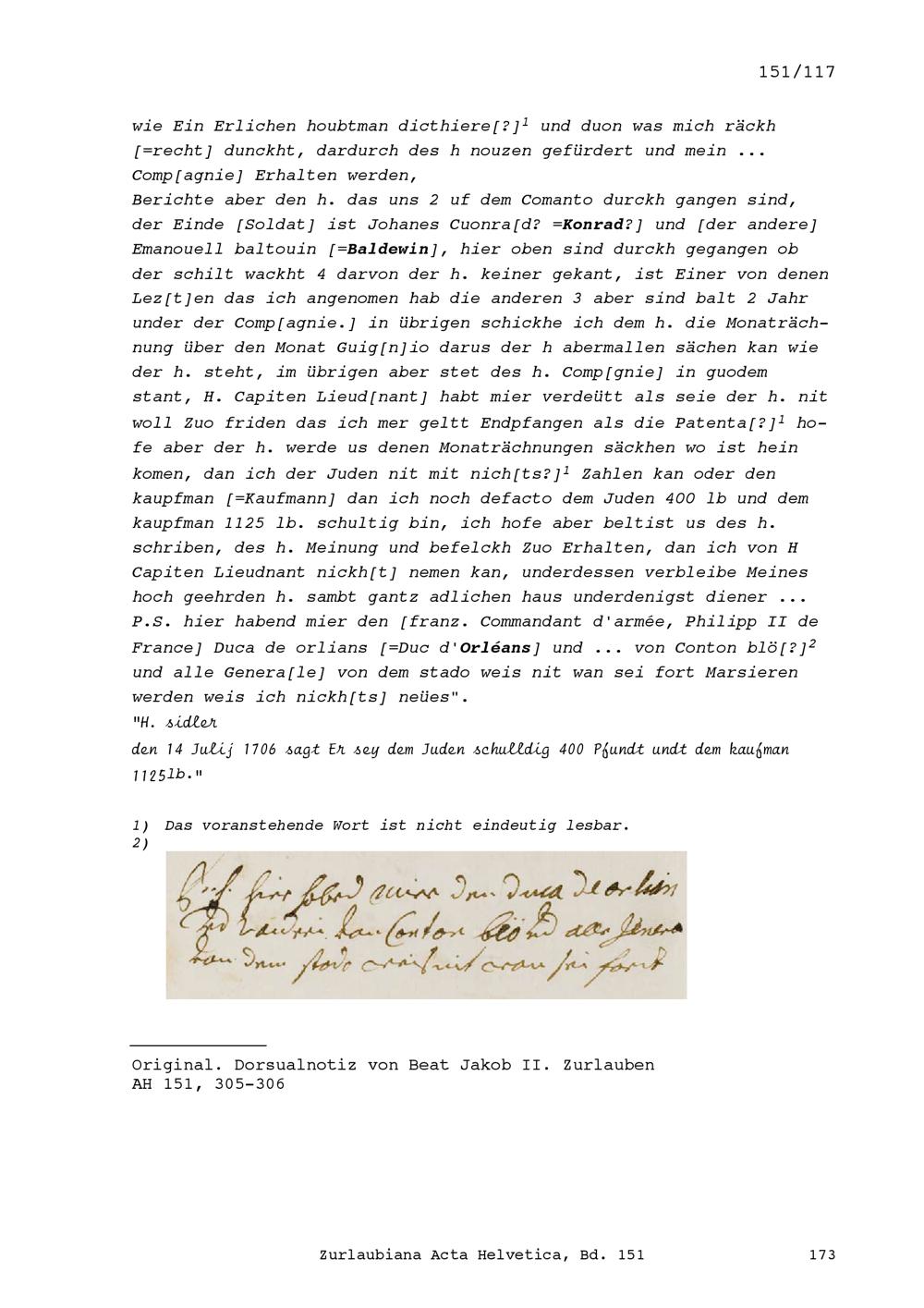 Schreiben von Johann Josef Sidler, Kommandant in der Kompanie Zurlauben im Regiment Amrhyn in mailändisch-spanischen Diensten, an Beat Jakob II. Zurlauben, dessen Inhaber