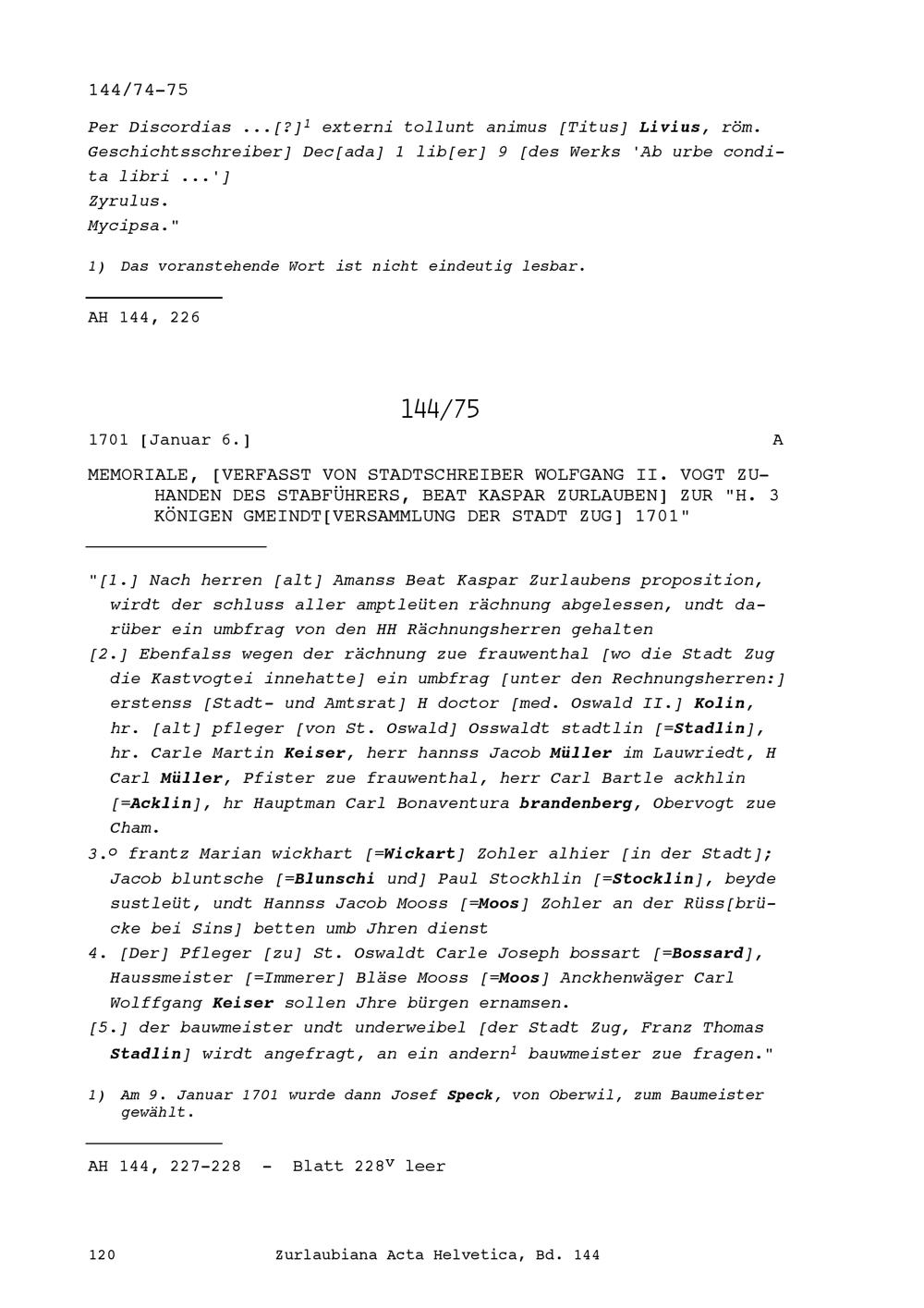 Notizen und Zitate, zusammengestellt für die Sankt Johannes Weihnachtsgemeinde von Beat Kaspar Zurlauben, Stabführer