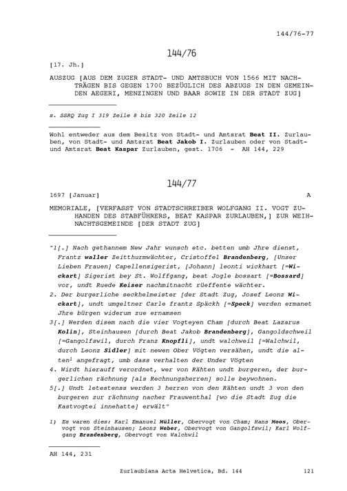 Bericht zuhanden von Beat Kaspar Zurlauben, Stabführer der Stadt Zug, zur Weihnachtsgemeinde der Stadt Zug, verfasst von Wolfgang II. Vogt, Stadtschreiber
