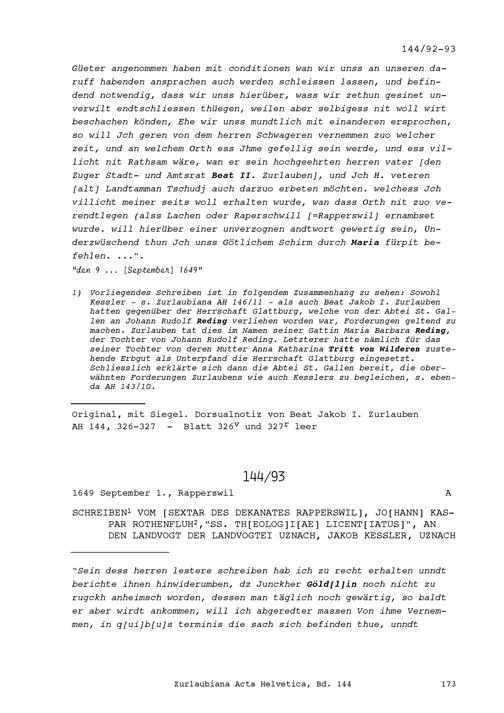 Schreiben von Jakob Kessler, Ratsherr, an Beat Jakob I. Zurlauben, Landschreiber der Freien Ämter, Bremgarten