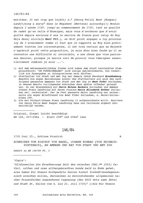 Schreiben von Louis-Auguste de Bourbon, Prince de Dombes, Generaloberst der Schweizer und Bündner, an Stadt und Amt Zug, Zug