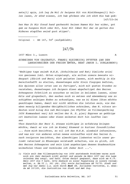 Schreiben von einem Bremgarter an Beat II. Zurlauben, Landschreiber der Freien Ä...