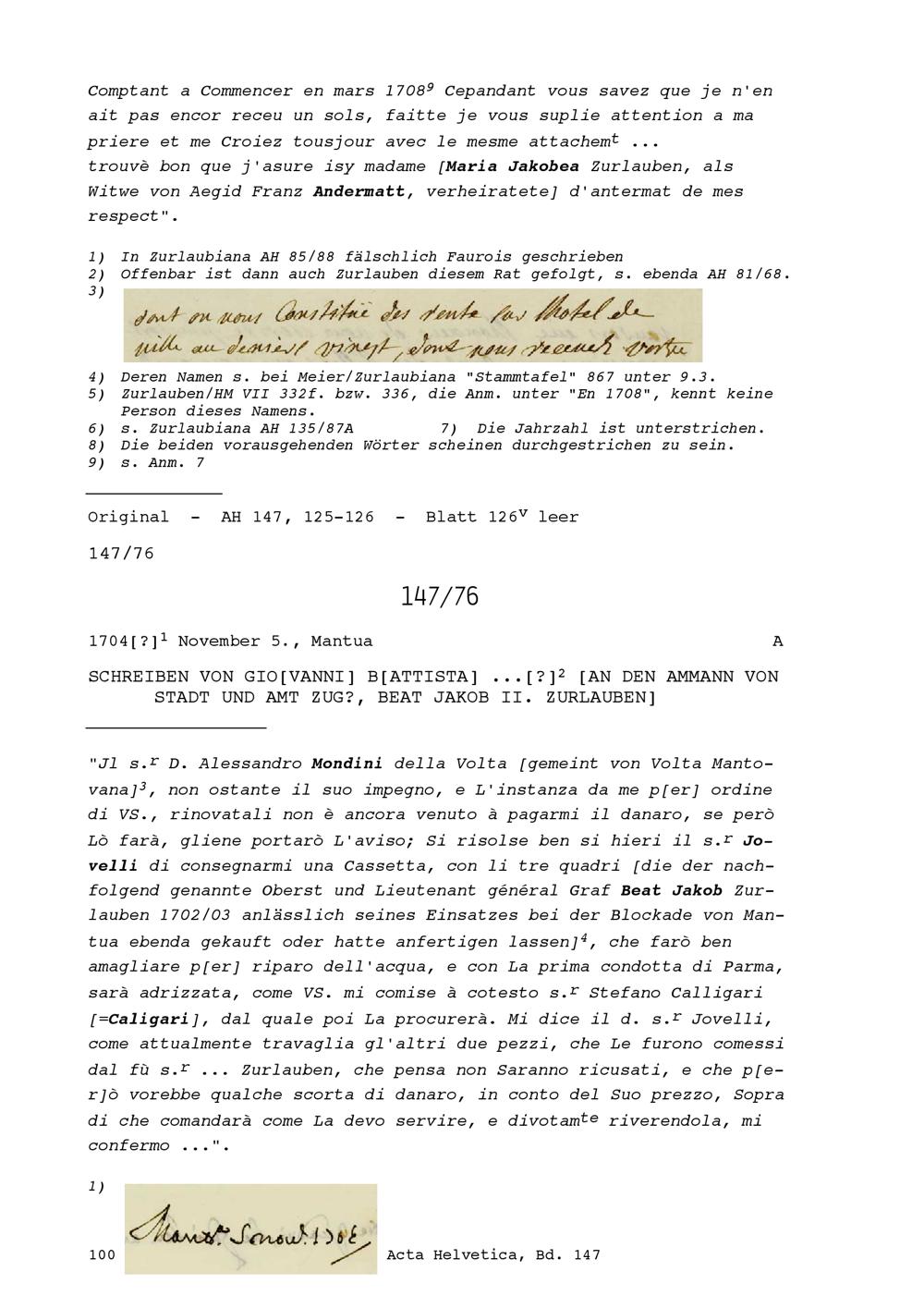 Schreiben von NN Veron, Tuchhändlerin, an Beat Jakob II. Zurlauben, Stadt- und Amtrat Zug und Inhaber einer Kompanie im Regiment Pfyffer in französischen Diensten