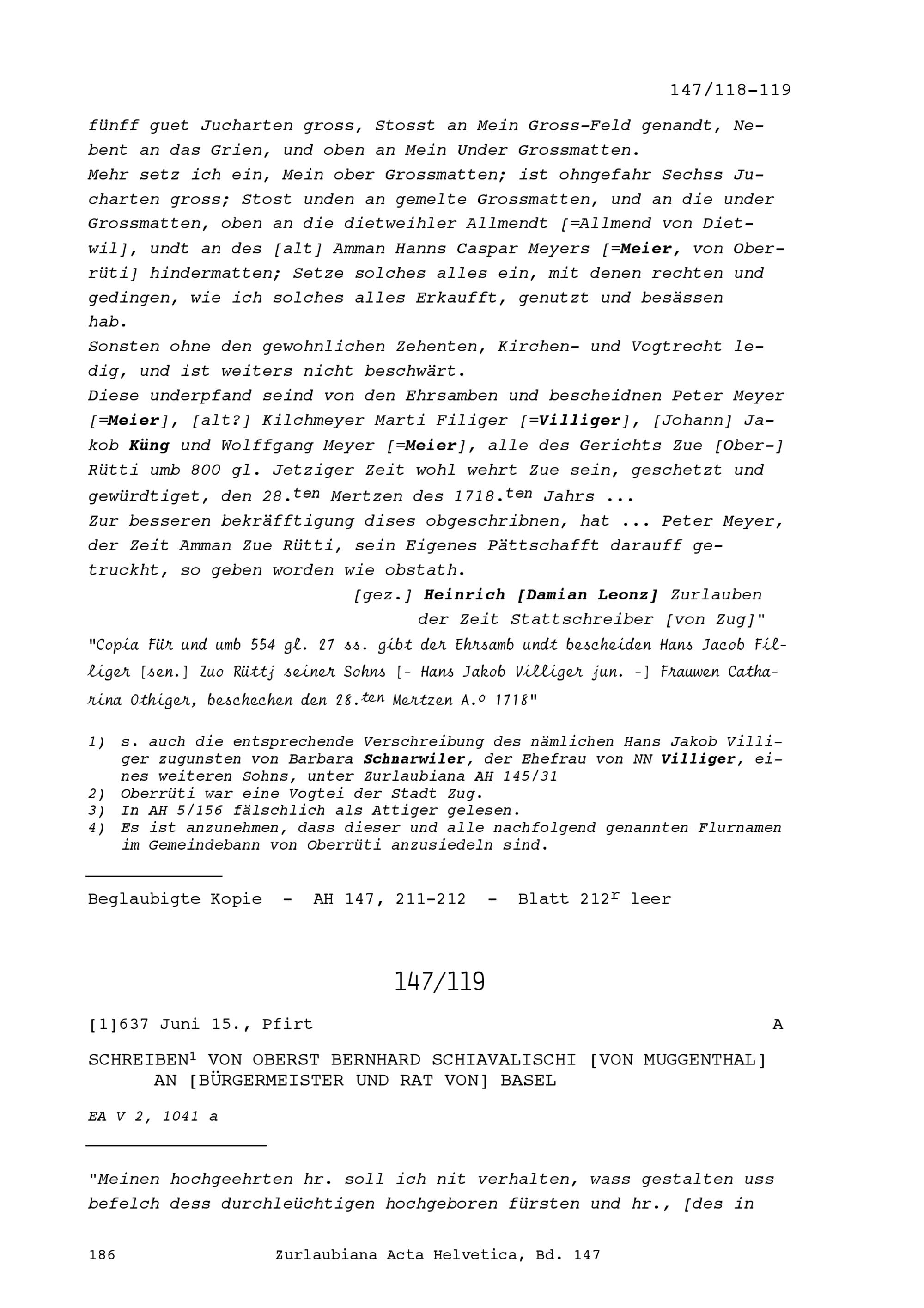 Verschreibung von Hans Jakob Villiger, Senior, von Oberrüti, um 554 Gulden 27 Schilling...
