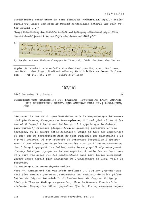 Kaufbrief für Oswald Fähndrich, aus der Zuger Vogtei Steinhausen, ausgestellt von Michael Fähndrich und von Wolfgang Fähndrich, von Bibersee, alles Brüder