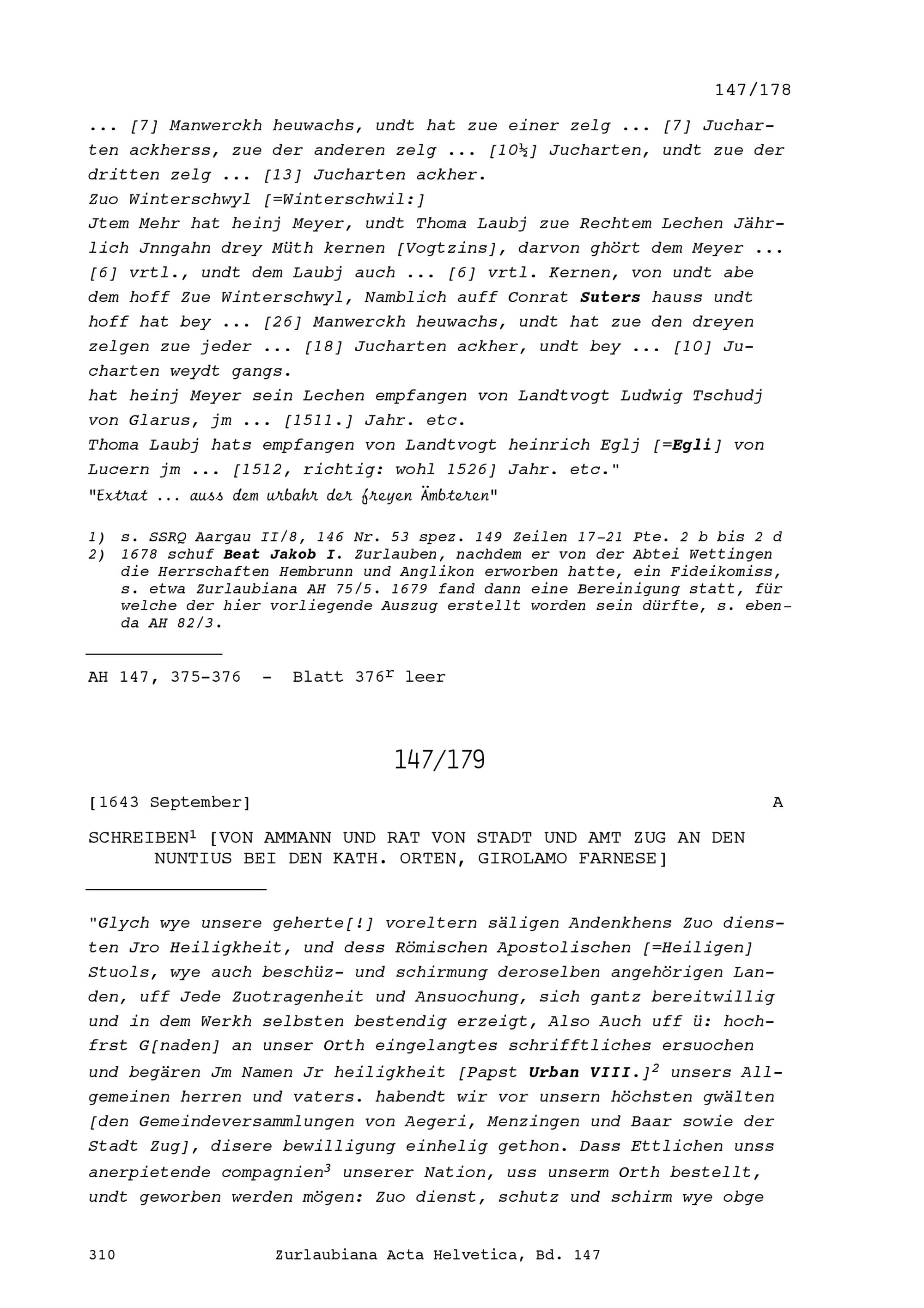 Urbar der Freien Ämter bezüglich der den Sieben regierenden Orten gehörenden Mannlehen...