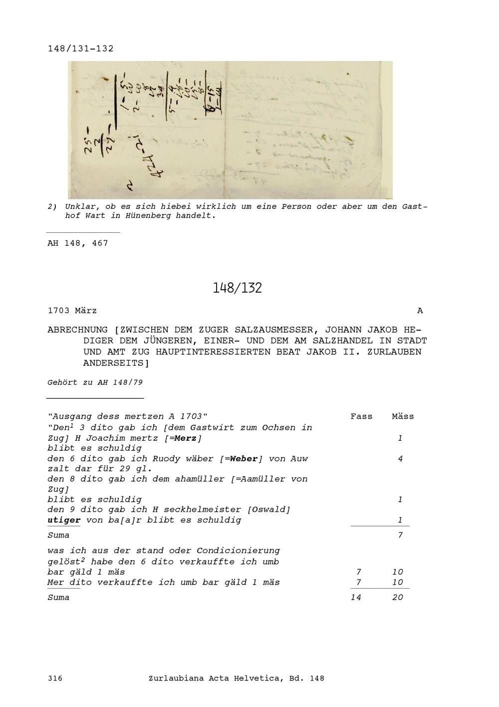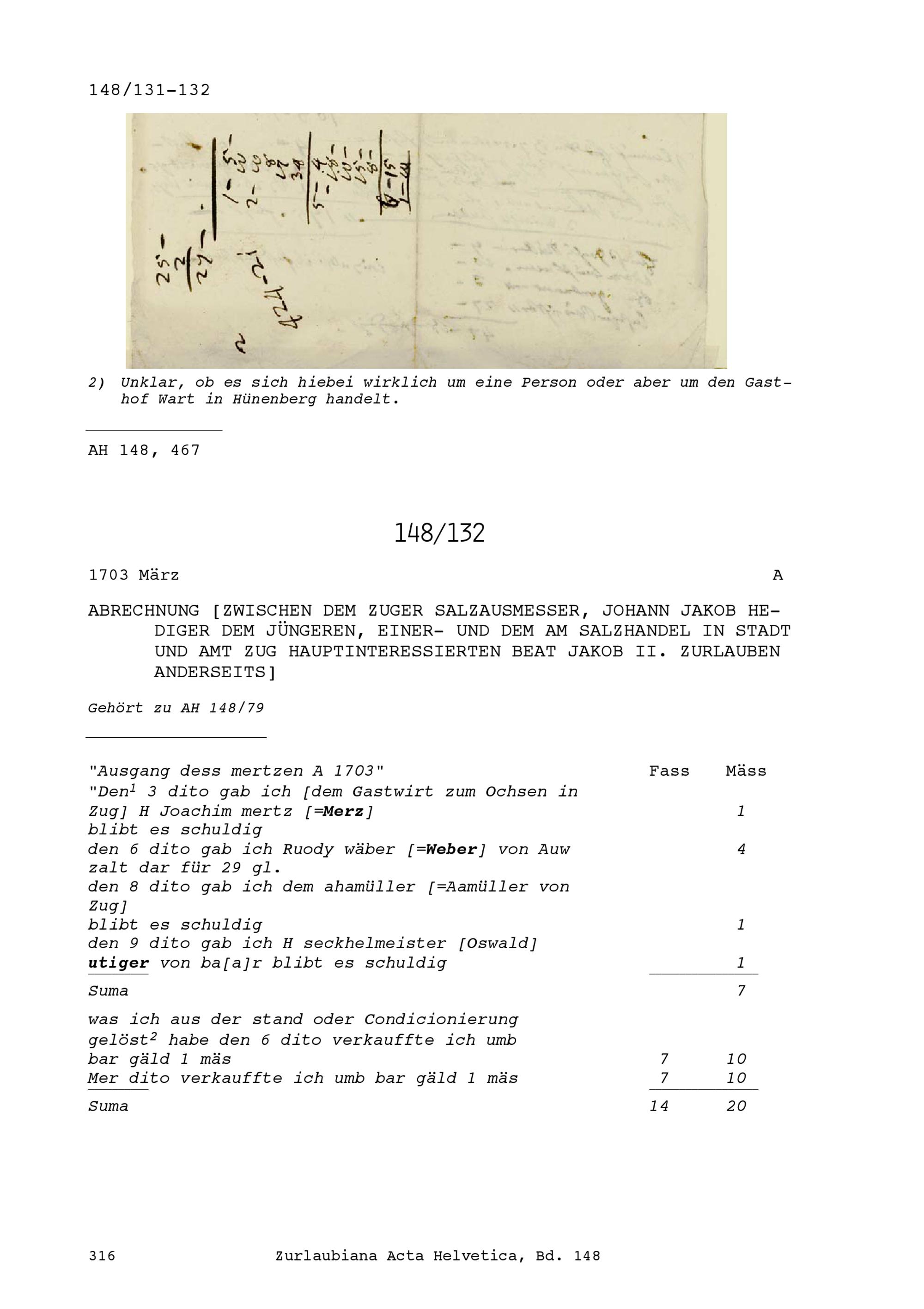 Rechnungsnotizen von Beat Jakob II. Zurlauben für Transporte