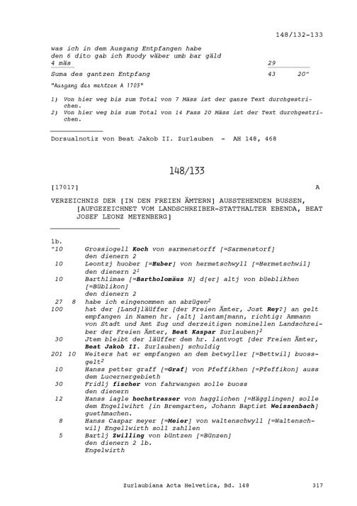 Abrechnung zwischen Johann Jakob Hediger, der jüngere, Zuger Salzausmesser, einerseits und Beat Jakob II. Zurlauben anderseits