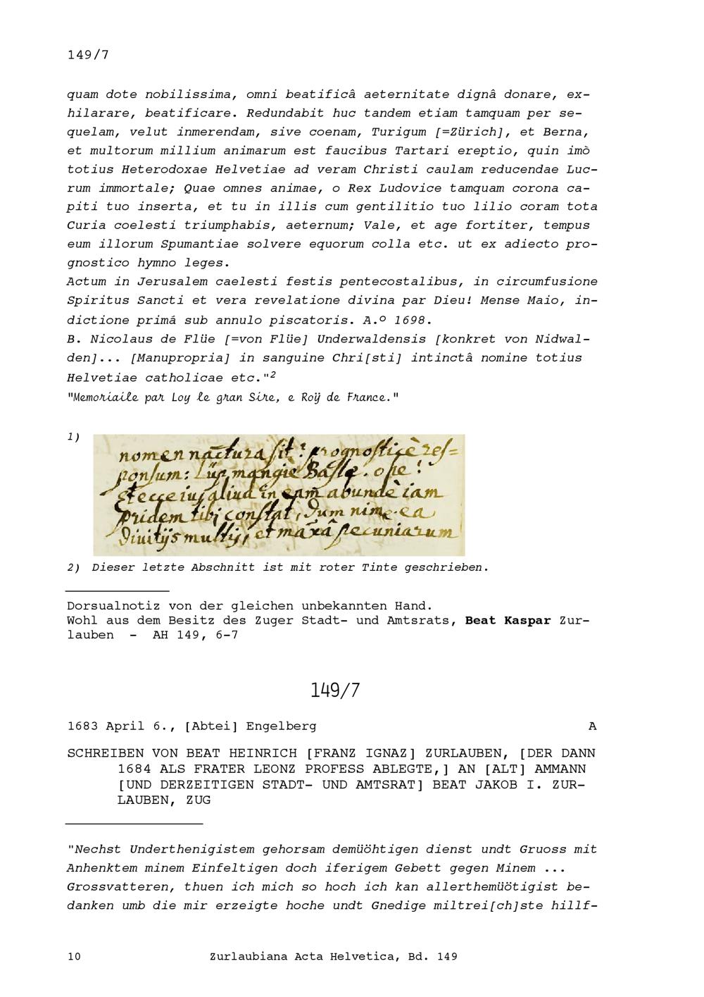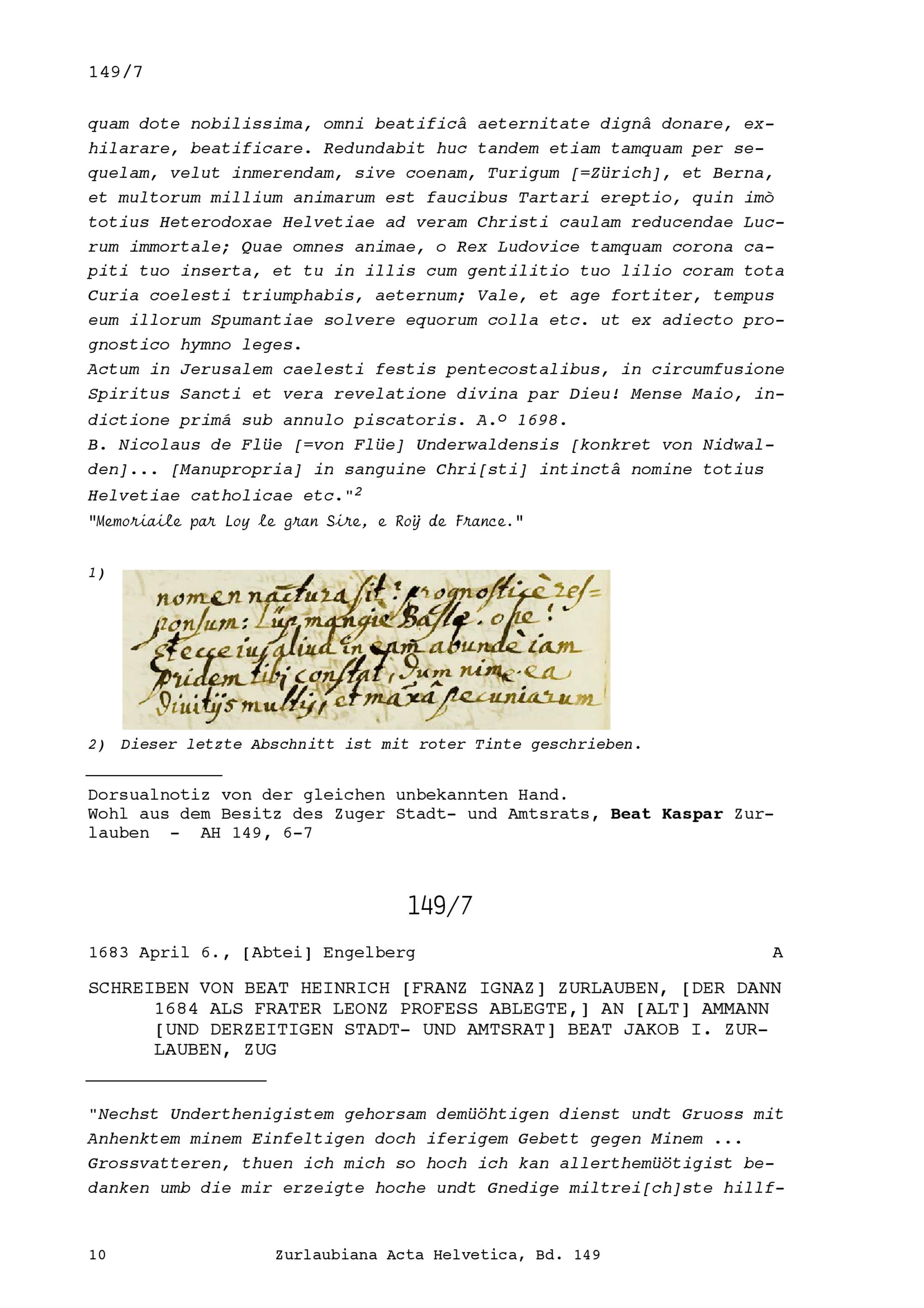 Notiz über konfessionellen Verhältnisse in der Eidgenossenschaft zuhanden von Ludwig XIV., König von Frankreich
