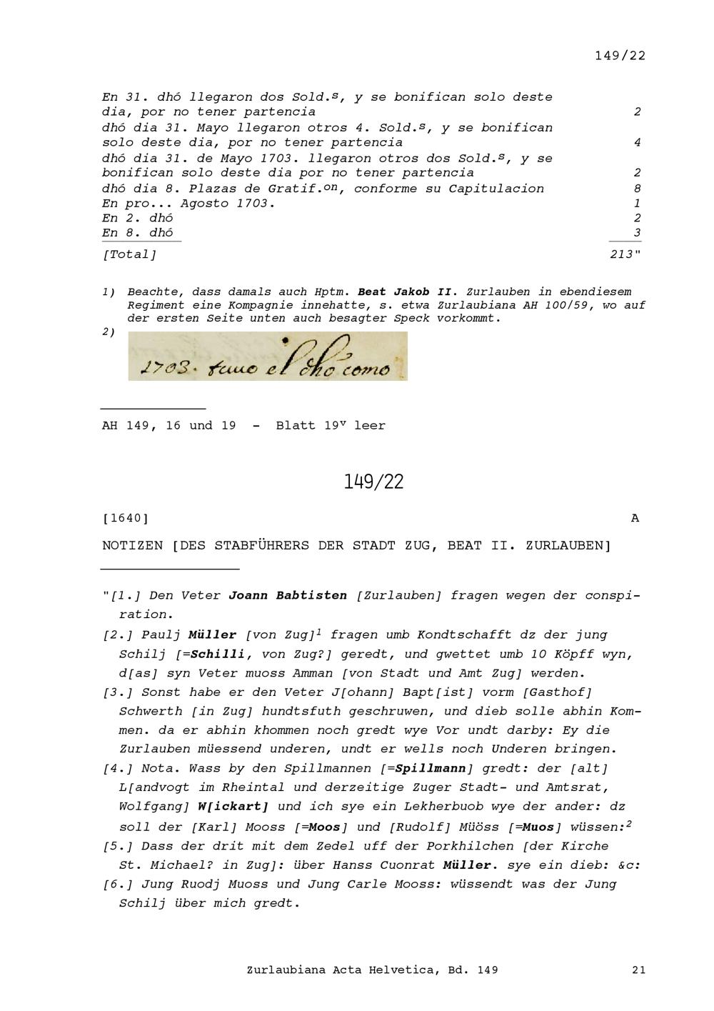 Abrechnung der Kompanie von Josef Martin Speck, von Appenzell, im Regiment Amrhyn in mailändisch-spanischen Diensten