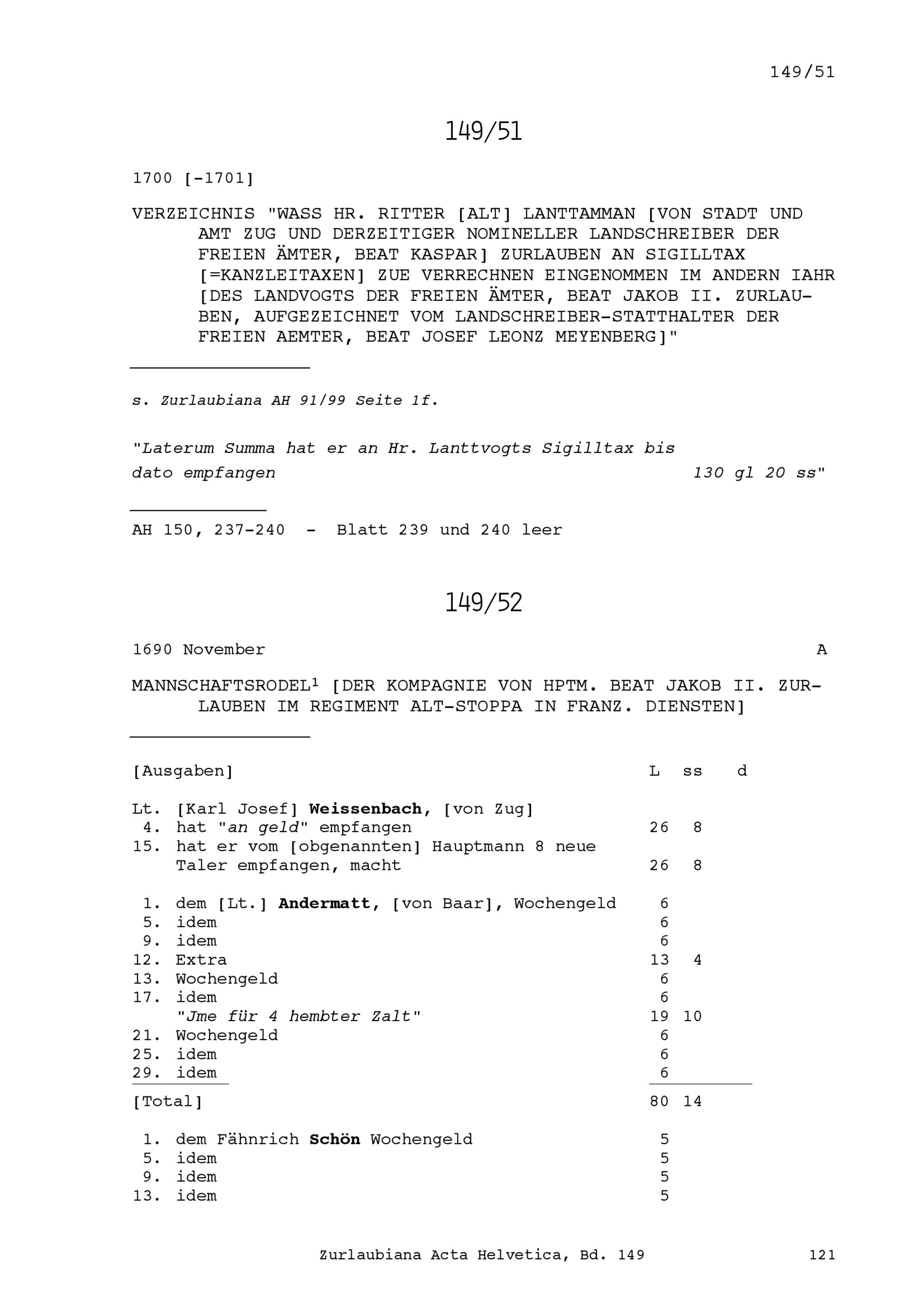 Mannschafts- und Soldrodel der Kompanie von Beat Jakob II. Zurlauben, Hauptmann,...