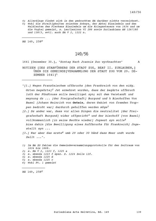 Notiz von Beat II. Zurlauben, Stabführer der Stadt Zug, über die Gemeindeversammlung der Stadt Zug vom 27. Oktober 1641