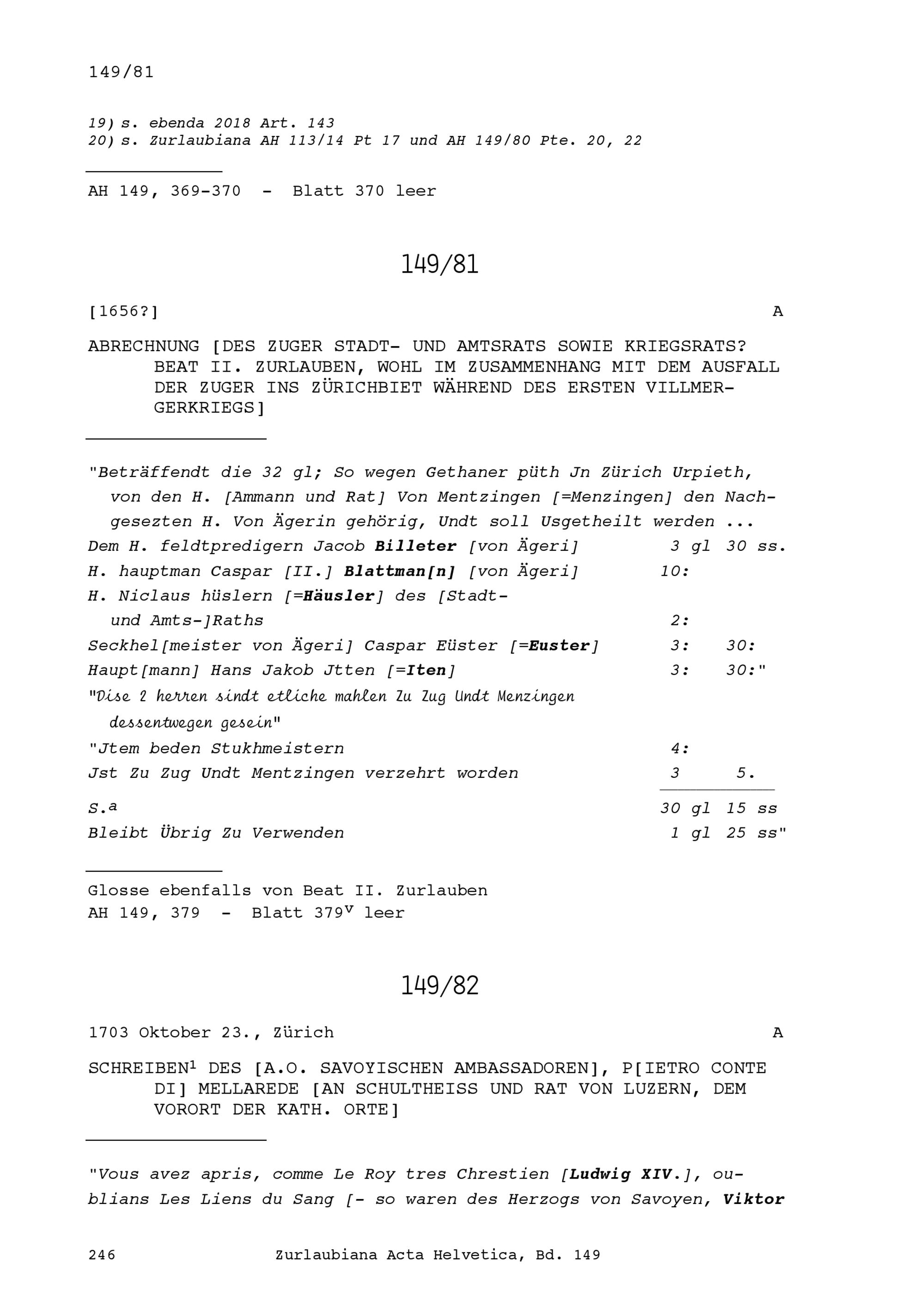 Acta Helvetica, Band 149