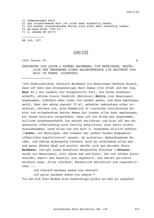 Notiz von Beat II. Zurlauben, Stadt- und Amtrat Zug, betreffend finanzielle Angelegenheiten von Johann Balthasar Honegger, von Bremgarten, von Ulrich Schön, von Konrad Bachmann, beide von Menzingen, und von Johann Franz Ulrich Wirz von Obwalden, alles Hauptleute im Regiment von Roll in französischen Diensten