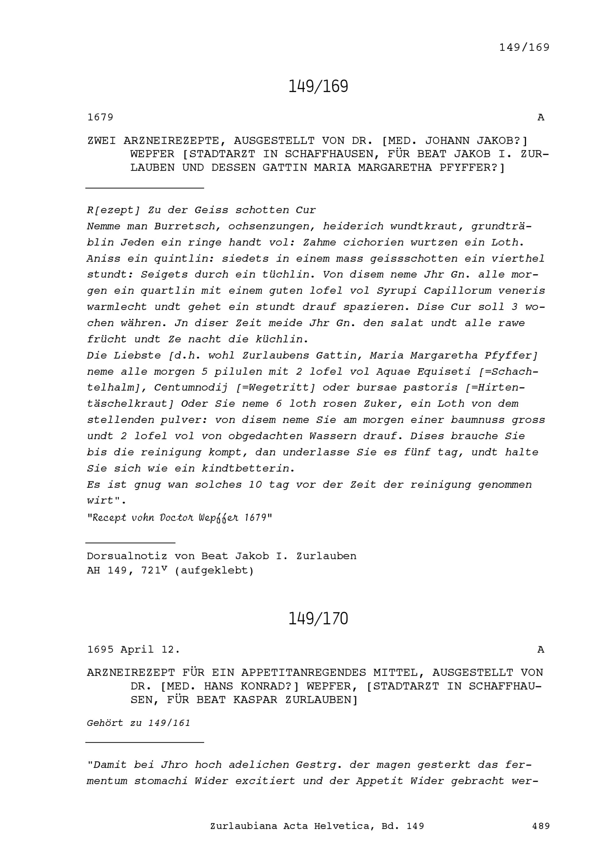 Acta Helvetica, Band 149