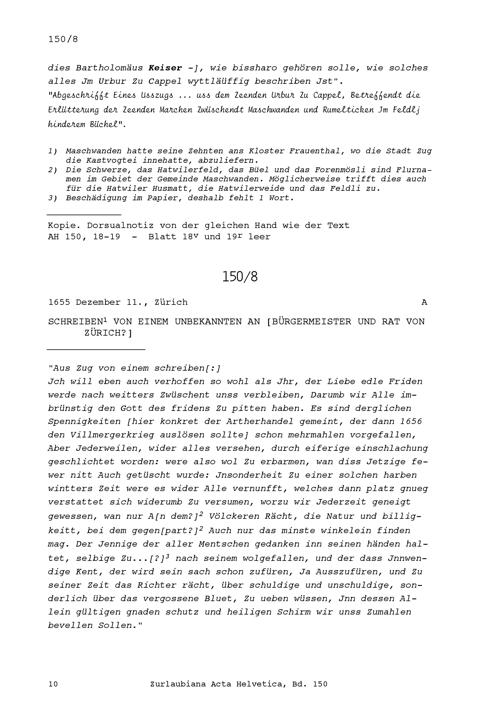 Beschreibung der Grenzen des Maschwanden Zehnten gegen Hattwil