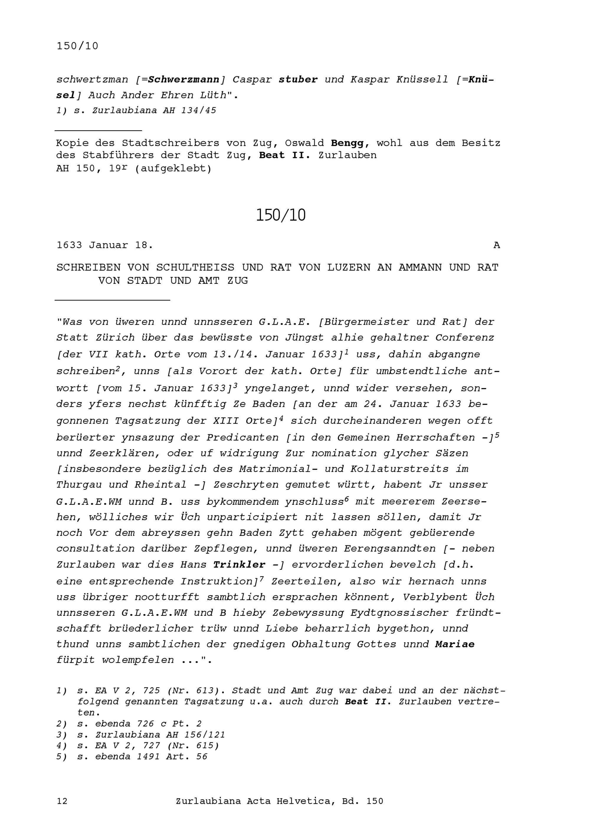 Acta Helvetica, Band 150