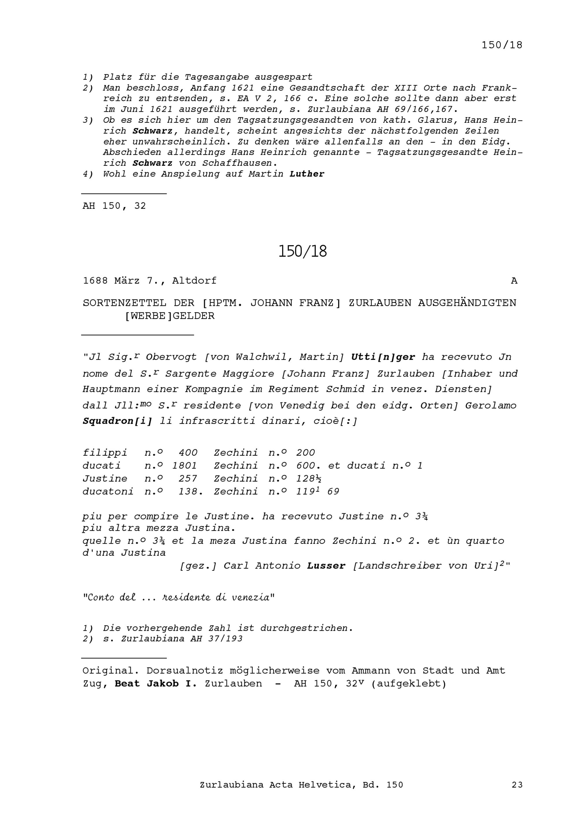 Acta Helvetica, Band 150
