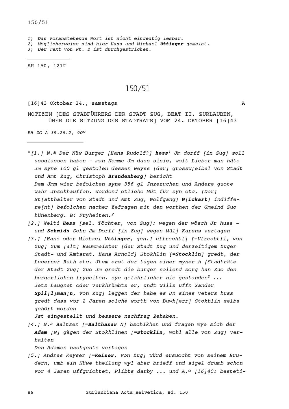 Acta Helvetica, Band 150