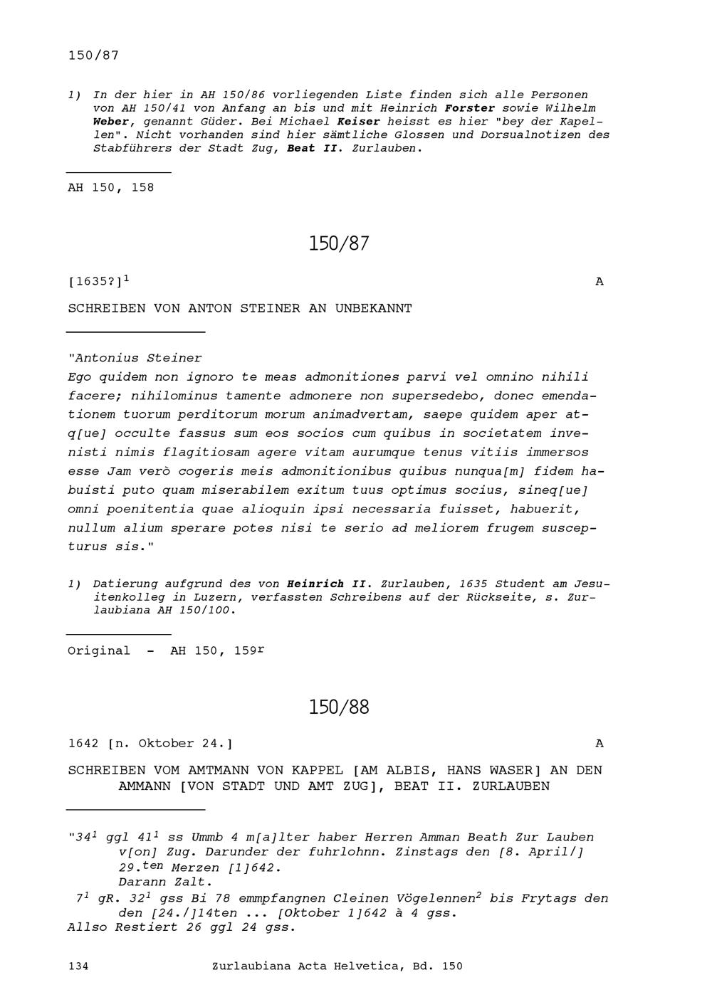 Acta Helvetica, Band 150
