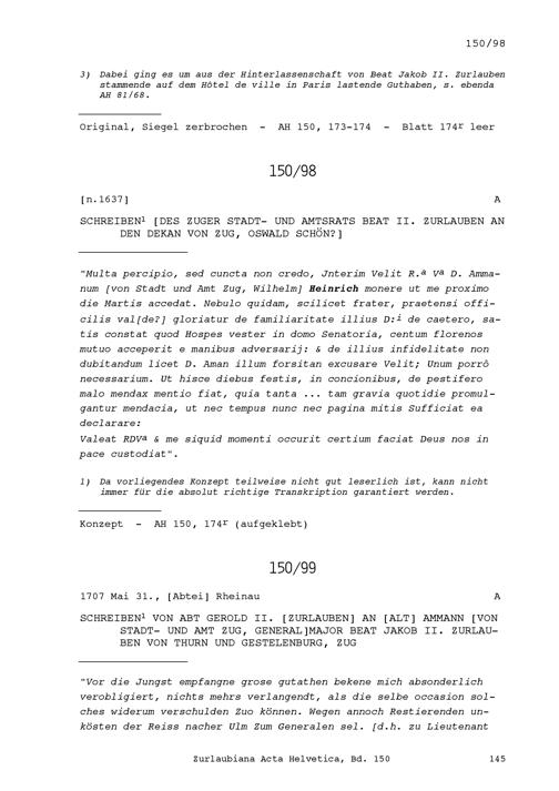 Schreiben von Johann Jakob Michael Moos, Kadett und Fourier im Regiment Kyd in sardischen Diensten und von Maria Anna Juliana Zurlauben, seiner Gattin, an Beat Jakob Anton Zurlauben, Priester, Zug
