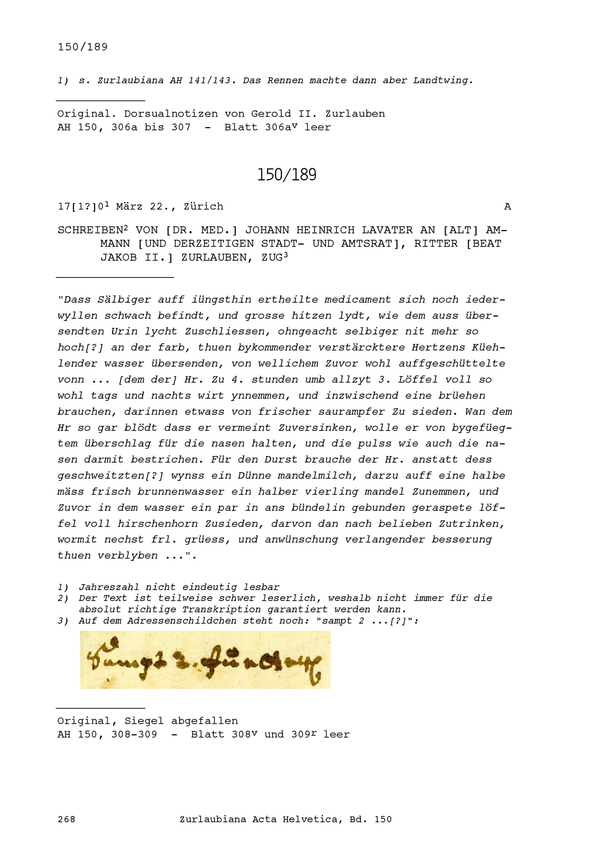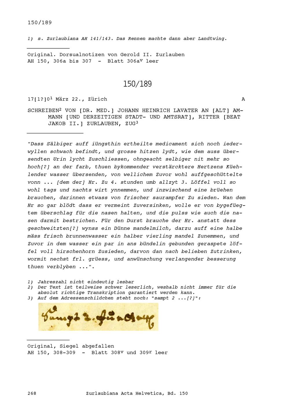 Schreiben von Beat Karl Anton Wolfgang Wickart, Dekan, an Gerold II. Zurlauben, Abt von Rheinau, Rheinau