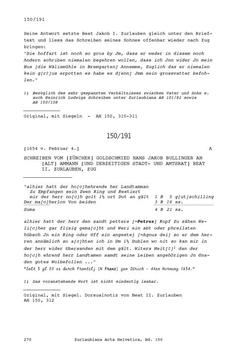 Schreiben von Heinrich Ludwig Zurlauben an Beat Jakob I. Zurlauben, Landschreiber...