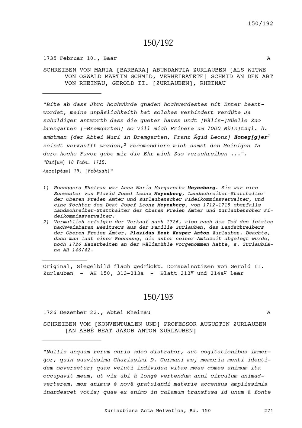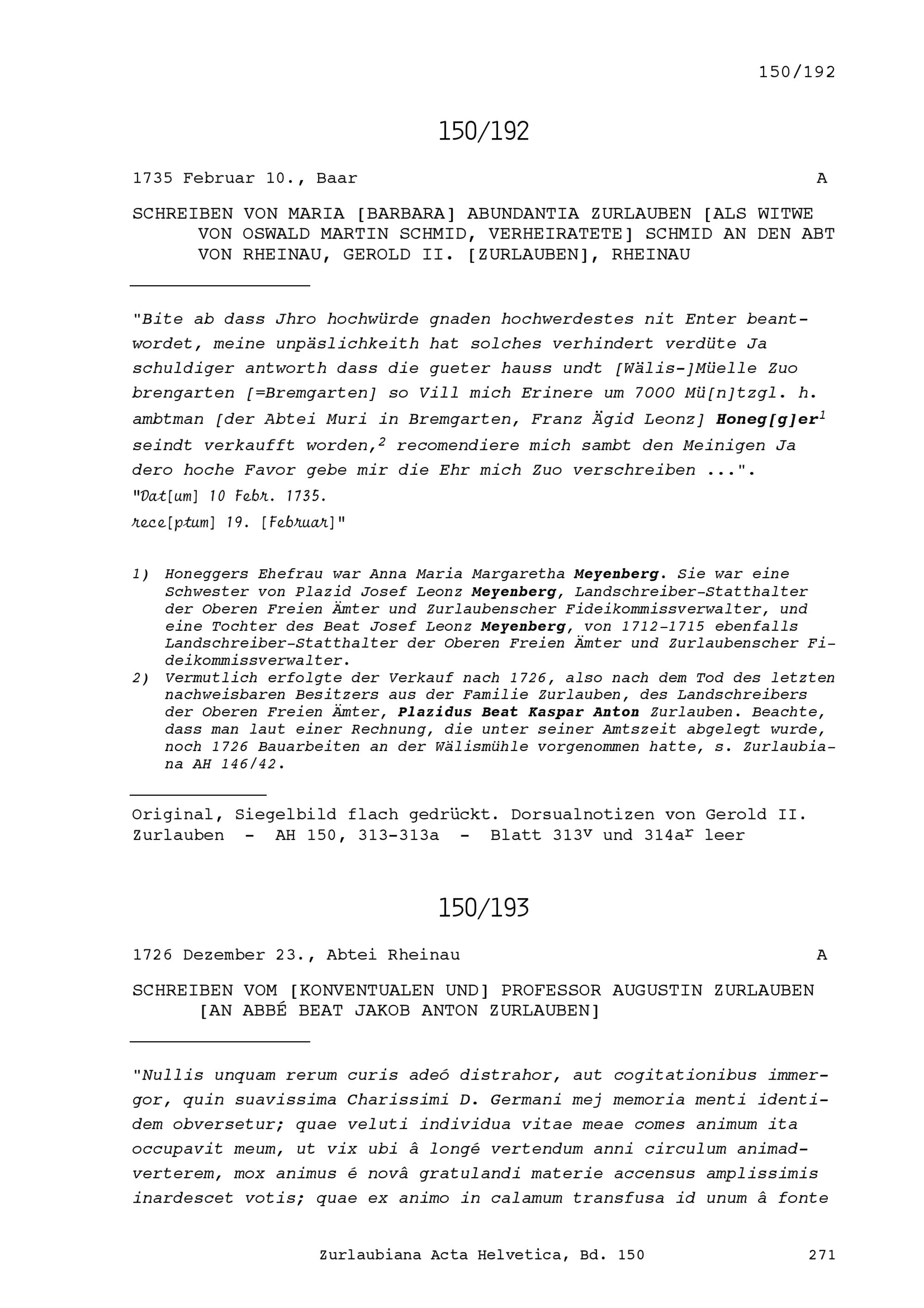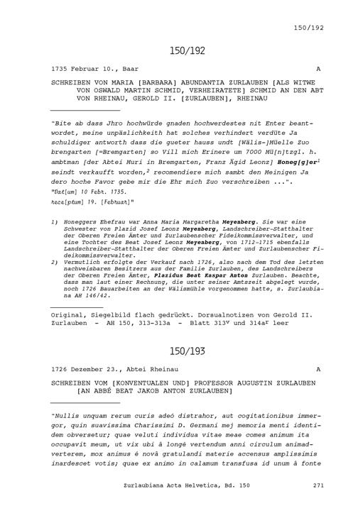 Schreiben von Augustin Zurlauben, Benediktinerpater der Abtei Rheinau und Professor an Beat Jakob Anton Zurlauben, Priester