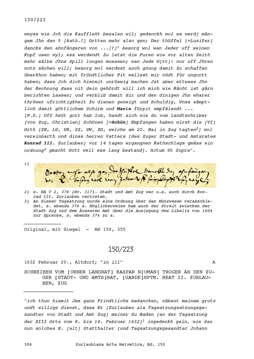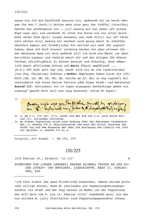 Schreiben von Beat Jakob Knopfli, Stadtschreiber, an Beat II. Zurlauben, Landschreiber der Freien Ämter und Leutnant, Bremgarten