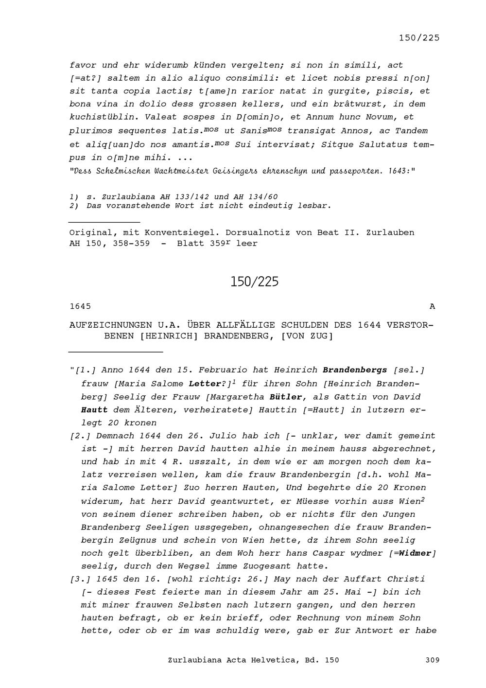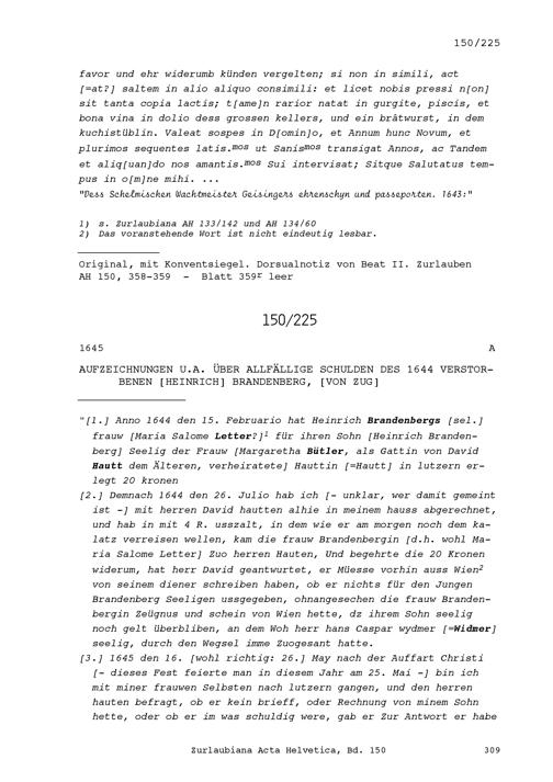 Schreiben von Wolfgang Adolf Stehelin, Prior von Stockburg, an Beat II. Zurlauben, Ammann von Stadt und Amt Zug, Zug