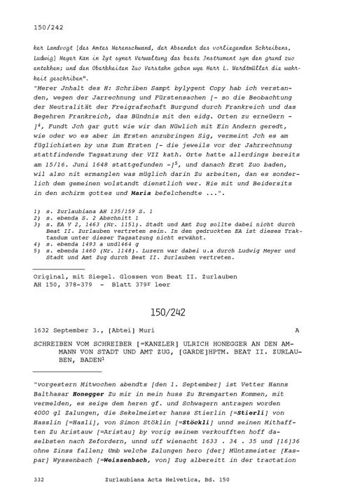 Schreiben von Ludwig Meyer, Ratsherr, an Beat II. Zurlauben, Altammann und Stadt- und Amtrat, Zug