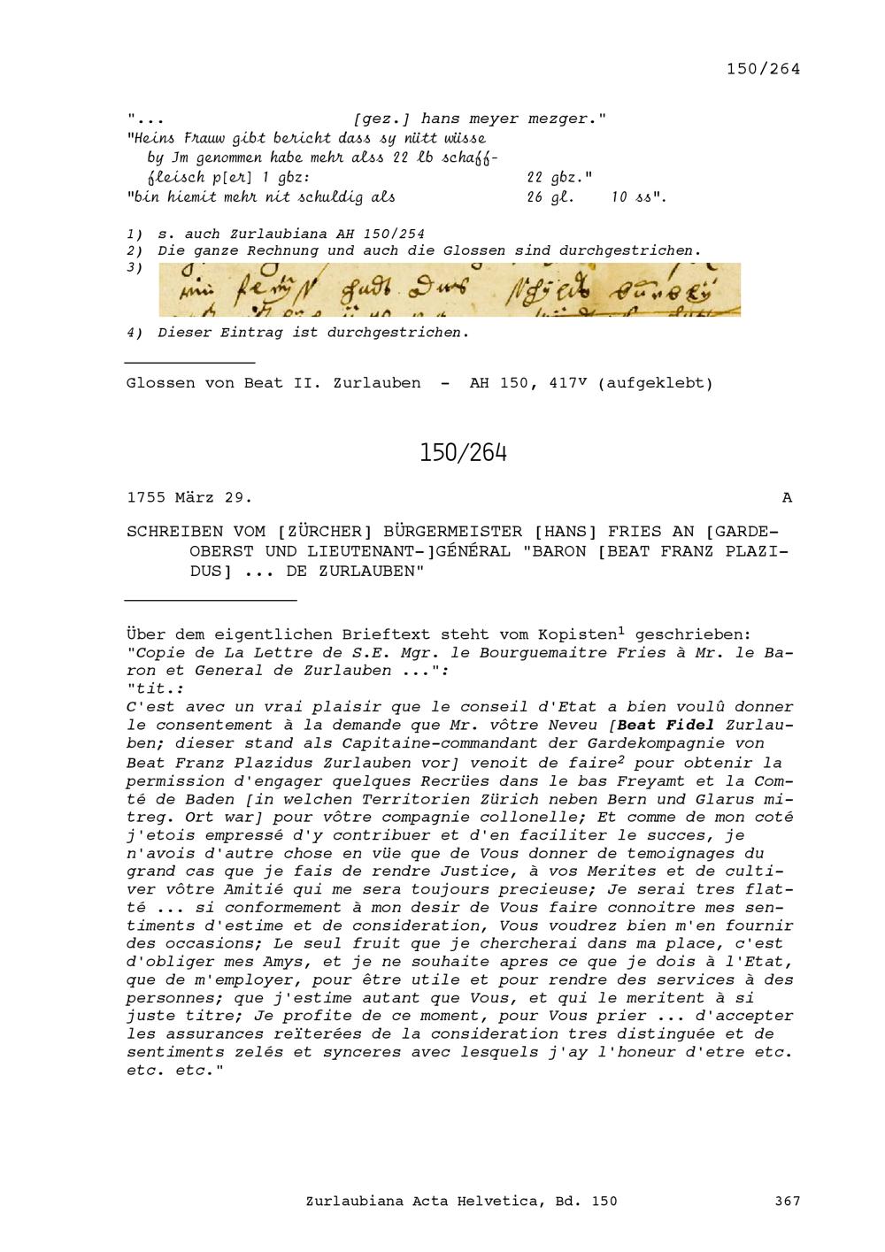 Rechnung für Beat II. Zurlauben, Ammann von Stadt und Amt Zug und Gardehauptmann, ausgestellt von Hans Meyer, Zuger Metzger